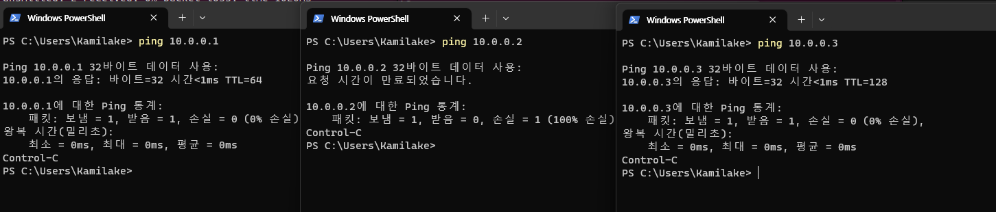 서버컴 라우트: 10.0.0.2->10.0.0.2; 10.0.0.3->10.0.0.3;