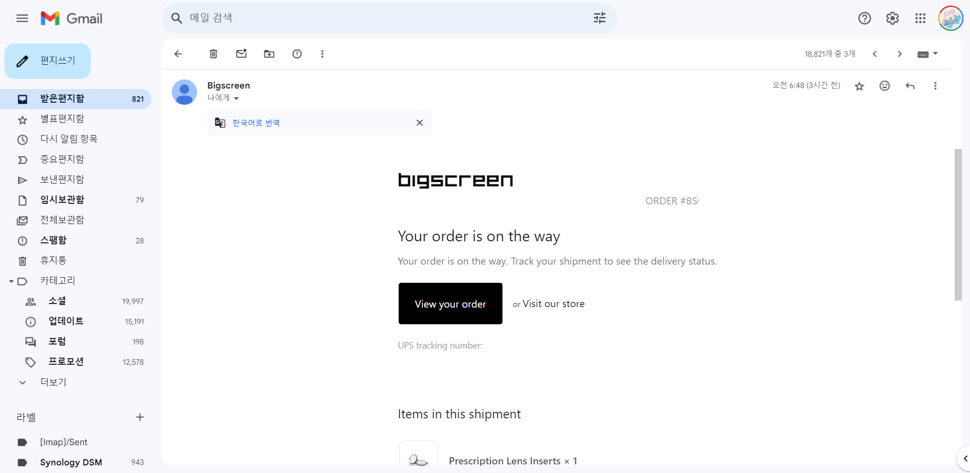 주문할 때가 3월 26일인데 한참 지난 오늘(=5월 10일) 아침에 일어나서 메일함을 열어보니 100년 전에 주문한 택배가 출발했다는 모양입니다