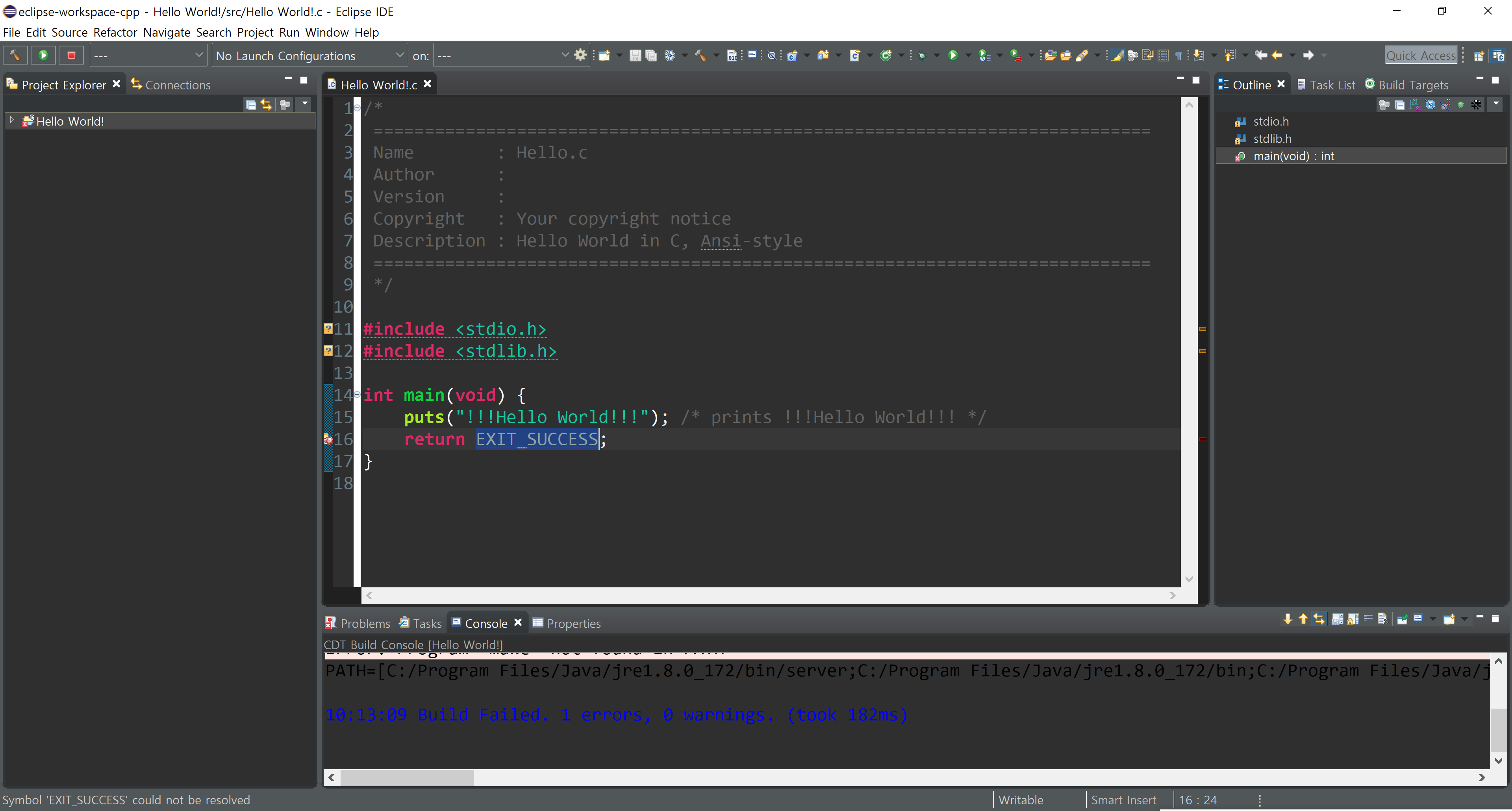Project Explorer 위에 있는 3개 버튼으로 빌드,실행,정지를 쉽게 수행할 수 있습니다.